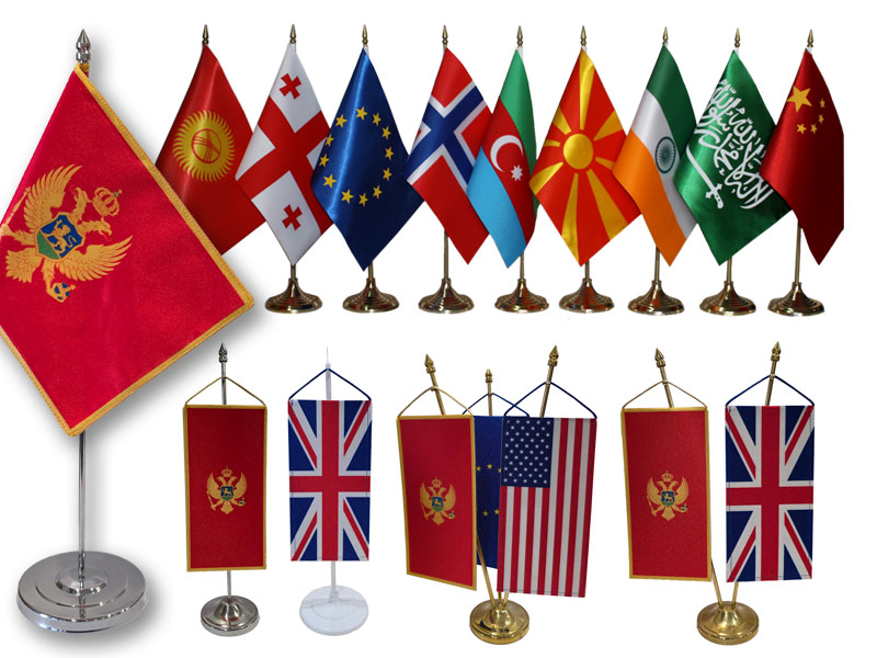 Za elegantno i profesionalno isticanje stonih zastavica, nudimo širok izbor specijalizovanih stalaka izrađenih od različitih materijala i u više varijanti. Ovi dekorativni elementi su nezaobilazan dio opreme u kancelarijama, kabinetima i salama za sastanke.